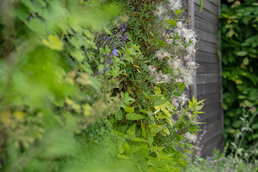 Dieser kleine Garten wurde einer sorgfältigen Neugestaltung unterzogen. Die in die Jahre gekommene und ausser Form geratene Buchenhecke wurde entfernt, und die stark verwilderte Fläche dahinter sorgsam abgetragen. Stattdessen haben wir naturbelassene Lärchenbretter und bepflanzte Wände als stilvollen Sichtschutz zum Parkplatz errichtet. Der Bereich zwischen den bepflanzten Wänden und dem Sitzplatz wurde mit Kies aufgefüllt und mit heimischen, standortspezifischen Stauden bepflanzt.