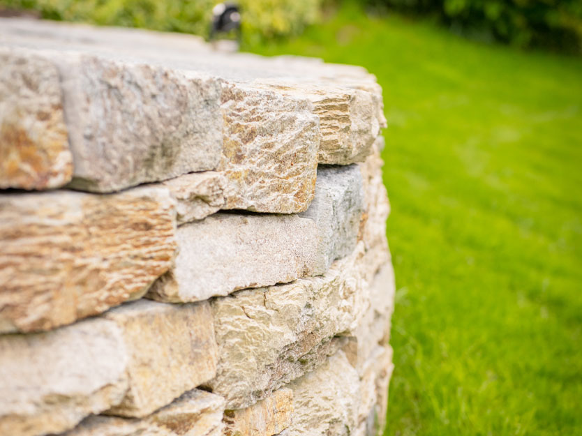 Bei dieser Teilneugestaltung des Gartenbereichs erfüllten wir den Wunsch der Bauherrschaft nach einem gemütlichen Platz, der durch den Rasen verbunden ist. Mit freiem Lauf für unsere Kreativität entstand eine natürlich anmutende Trockensteinmauer, die dem Garten eine zeitlose Eleganz verleiht. Der formwild gestaltete Natursteinbelag fügt sich harmonisch in das Gesamtbild ein und lädt zum Verweilen ein.